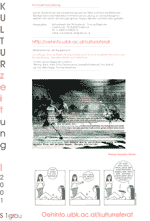 Die Kulturzeitung ist im Rahmen des Kulturreferates der ÖH entstanden, unter Mitwirkung von Student/innen aus ganz Österreich. Die Orginalblätter sind in A0 Größe in Eigendruck hergestellt. Wir waren Gast in der Siebdruckwerkstätte von Cunst & Co in Innsbruck.